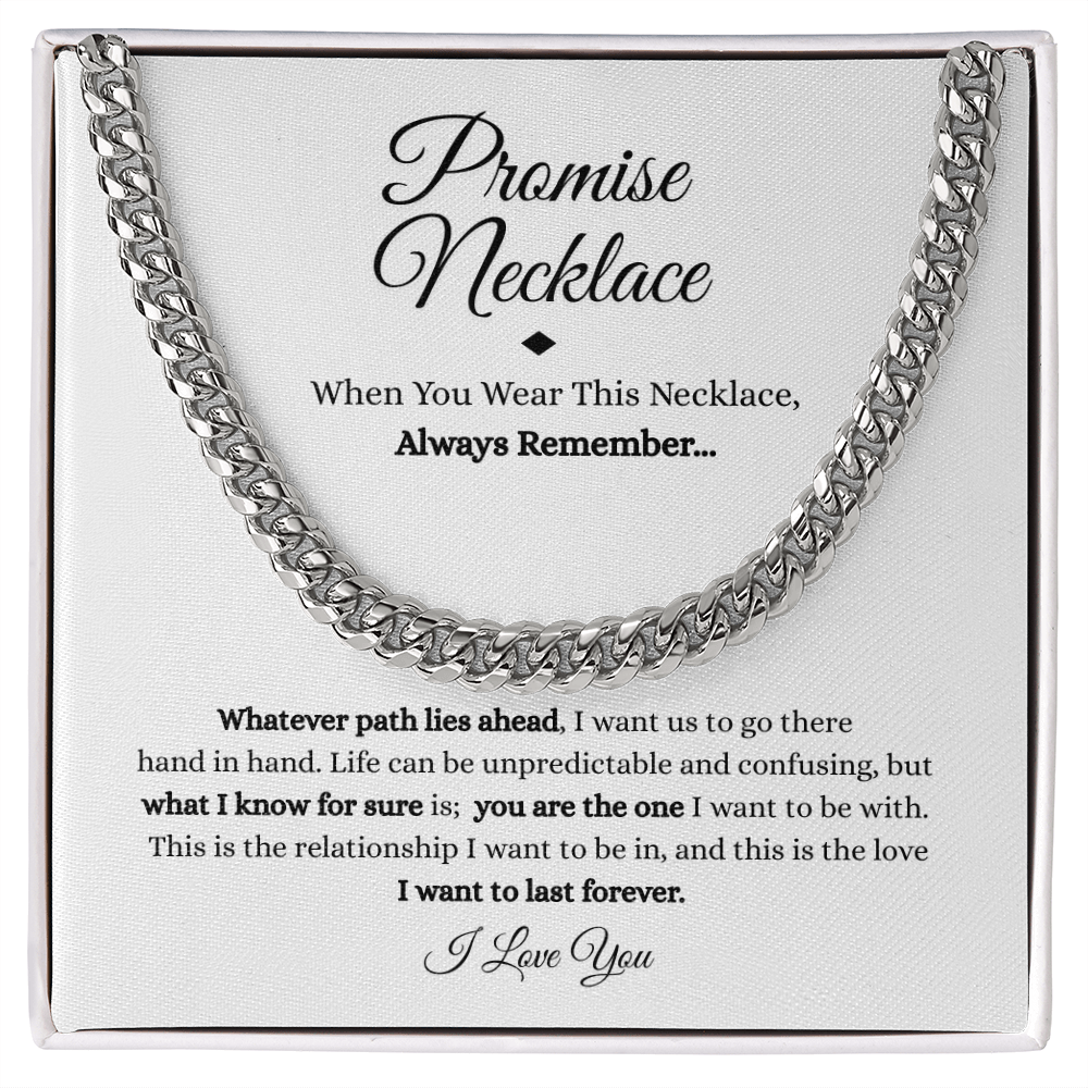 Give him more than just a gift—give him a promise. This Promise Necklace is more than jewelry; it's a powerful symbol of love, strength, and unwavering support. Perfect for anniversaries, birthdays, or "just because" moments, this chain comes in a premium mahogany-style box with a heartfelt message card that reads: